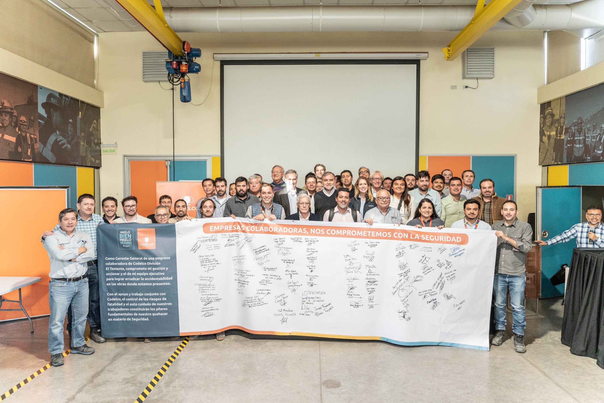Representantes de empresas colaboradoras de División El Teniente recibieron el llamado del Gerente General de la División a reforzar el liderazgo en terreno y suscribieron un compromiso para seguir avanzando en el control de riesgos de fatalidad y el autocuidado.